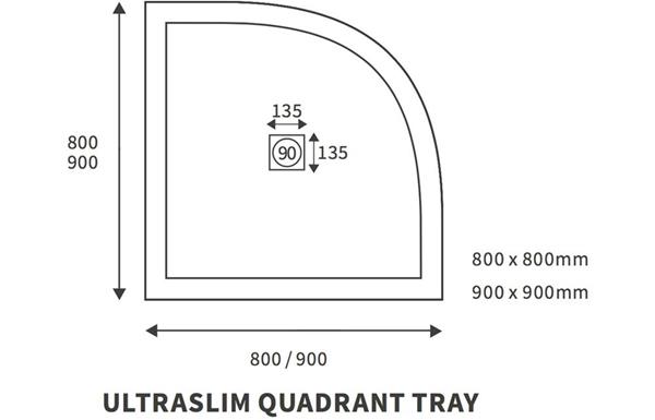 25mm Ultra-Slim 900mm x 900mm Quadrant Tray & Waste