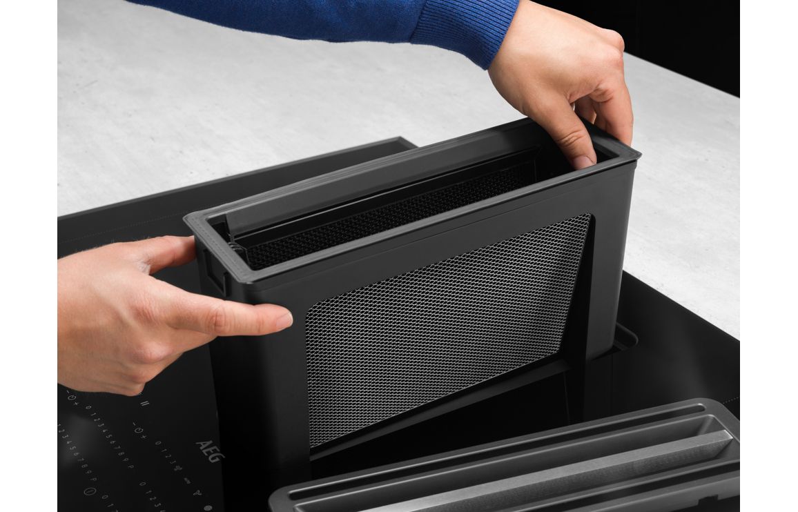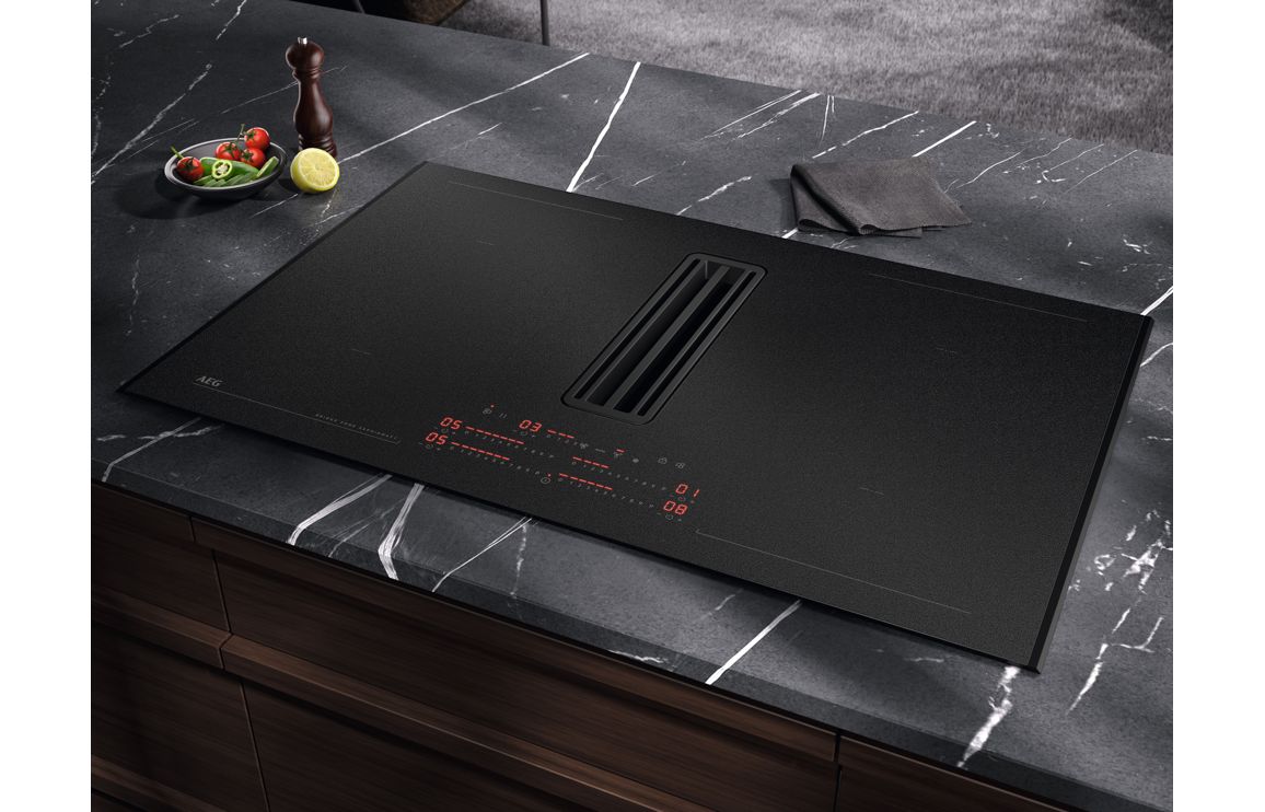 A Built In AEG Venting Induction Hob in Matt Black.
