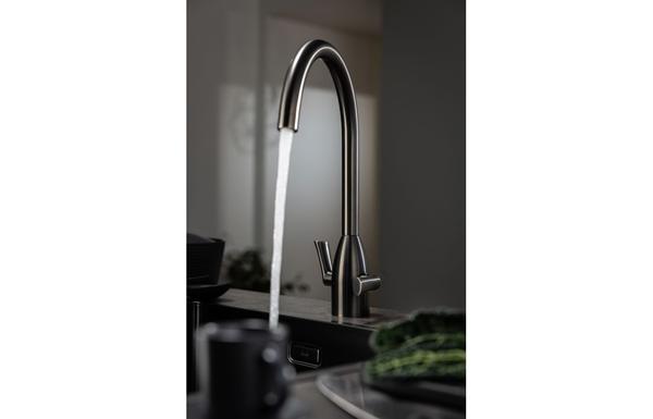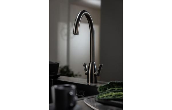 A contemporary Abode Airo tap in gun metal with a polished finish.