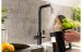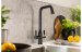 Striking industrial chic designed mixer with matching slimline knurled handles and a base spout detail that delivers hot cold and heated filtered water.