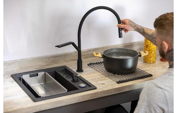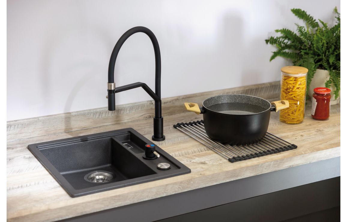 A modern Abode LivInc tap in matt black with a matt finish.