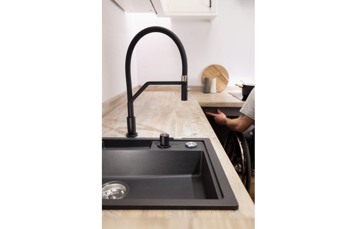Purpose-Built Design. Designed from scratch specifically for inclusive living and is not a retrofitted standard sink or tap.