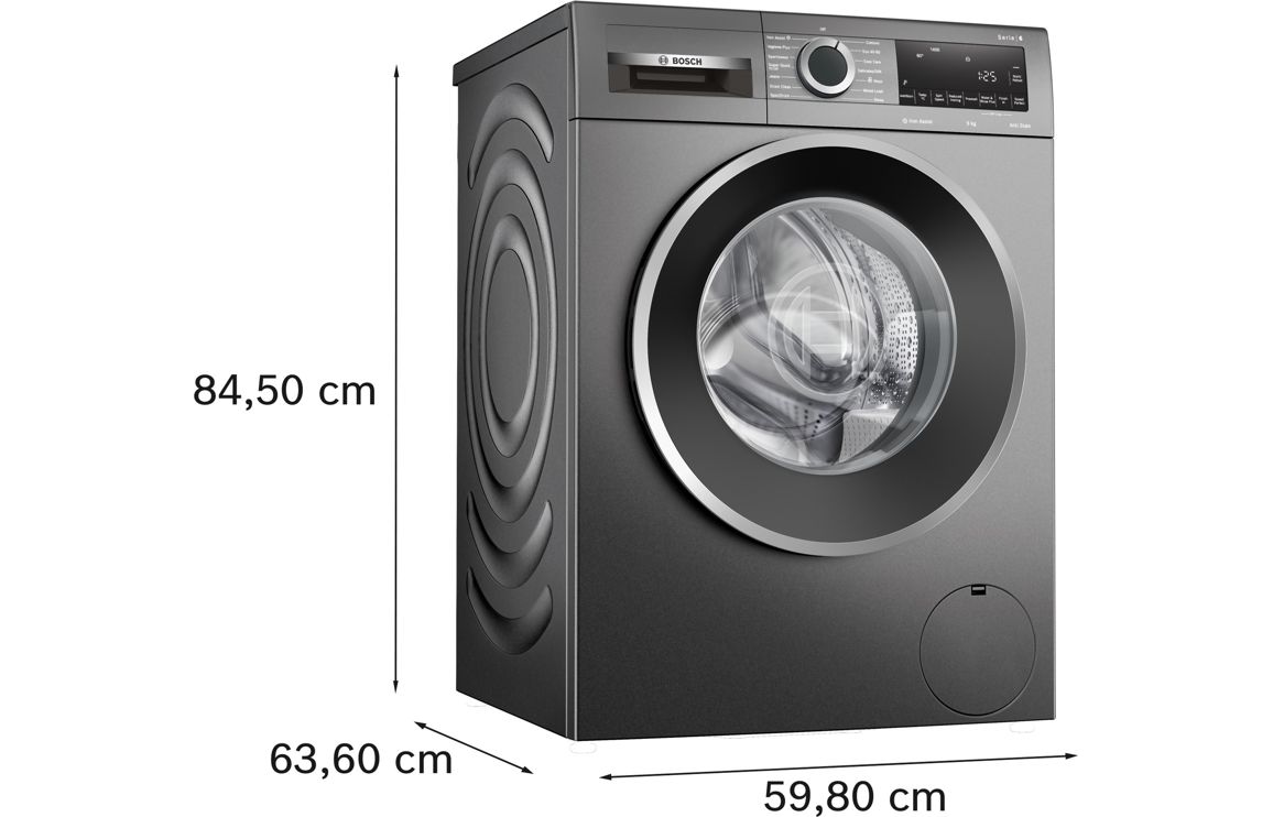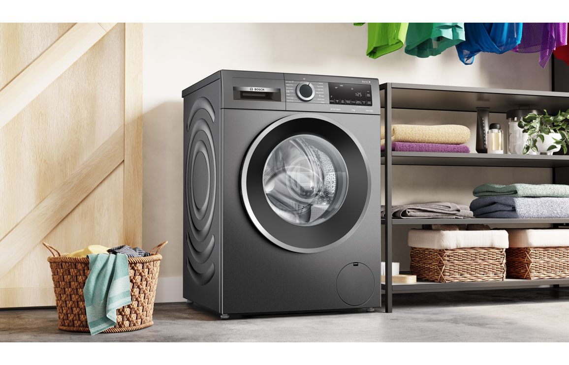 A Free Standing Bosch Washing Machine in Cast Iron Grey.