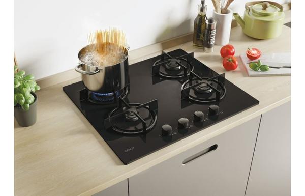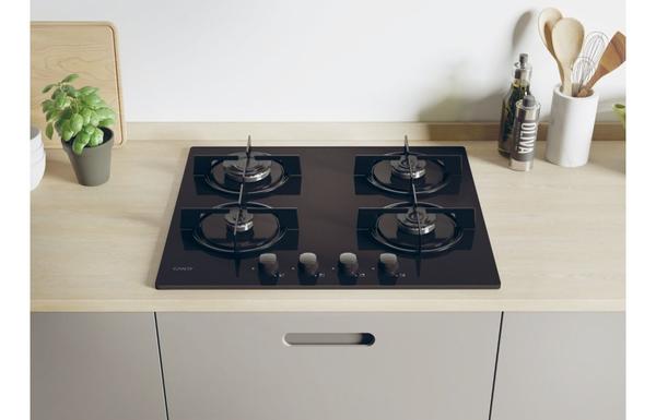 A Built In Candy Gas on Glass Hob in Black Glass.