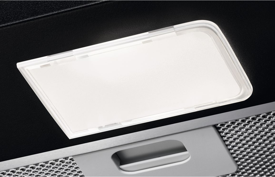 A Wall Mounted Electrolux Chimney Hood in Black.