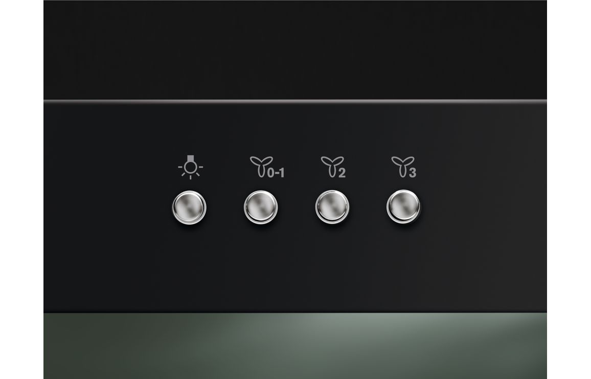 A Wall Mounted Electrolux Chimney Hood in Black.