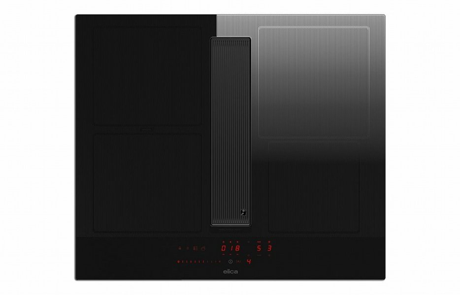The extractor hob available in 60 72 or 83 cm that fits perfectly in both large and small kitchens. Its sophisticated texture conceals a powerful air extraction system activated with a simple flick of the central flap.