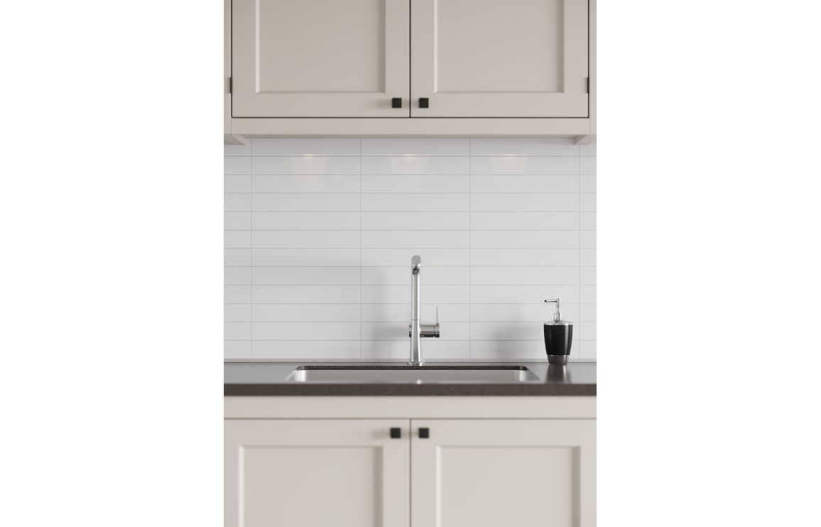 Fibo 30x5cm Rectangular Tile 600x580mm Splashback - Denver White (Pk/2)