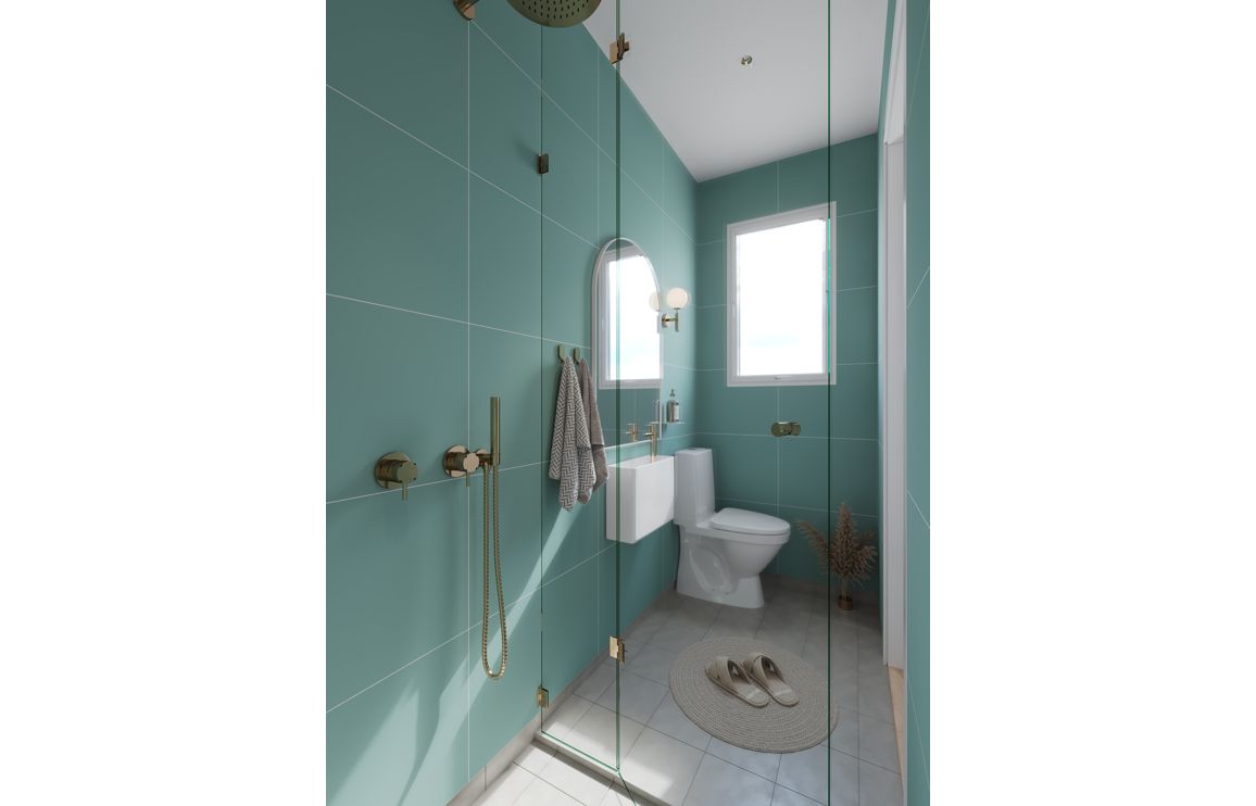 This refreshing green colour with a hint of blue is perfect for creating a relaxing atmosphere in the bathroom.
