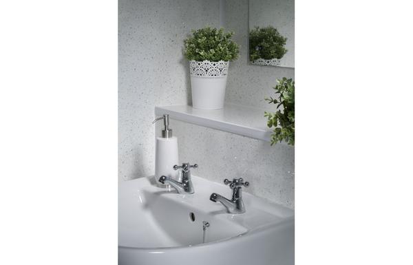 Brightening up any space Sugar Sparkle is a bold statement choice. With small reflective details this decor provides a bit of glitz and glam for a truly stand out bathroom.