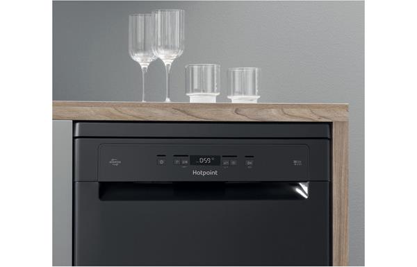 - A Free Standing Hotpoint Standard Dishwasher in Black