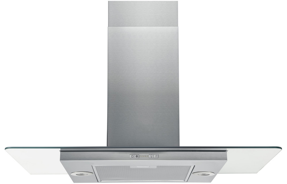 Hotpoint UIF 9.3F LB X 90cm Flat Glass Island Hood - Glass & St/Steel by Hotpoint