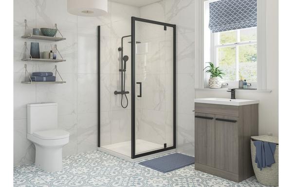 Iconic 900mm Pivot Door - Matt Black by AQUS Showers