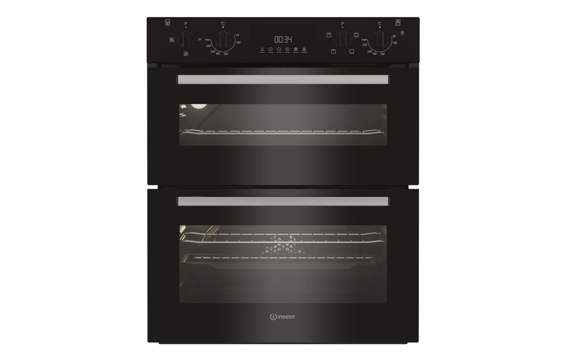 Indesit DUI 10D B Built Under Double Electric Oven - Black