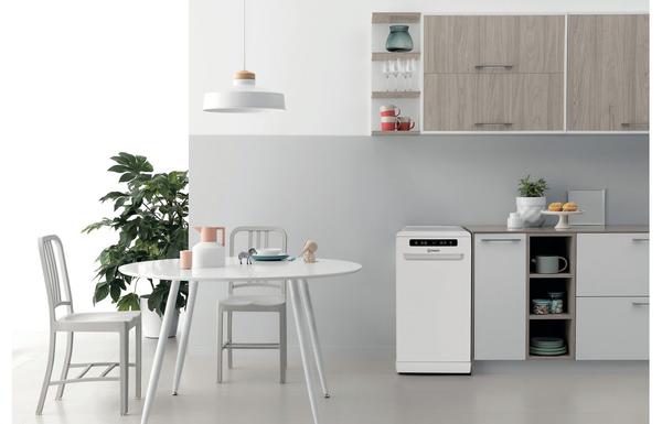 - A Free Standing Indesit Slimline Dishwasher in White.