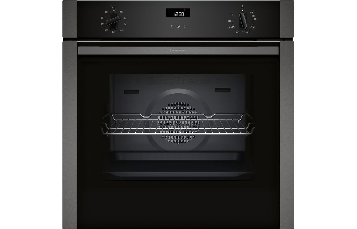 A built in Neff single electric oven in graphite grey.