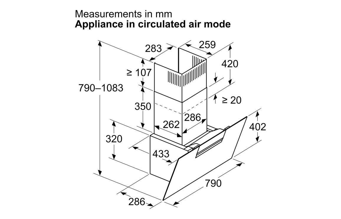 Height Of Chimney: 753-996mm Ducting 790-1083mm Recirculatingmm).