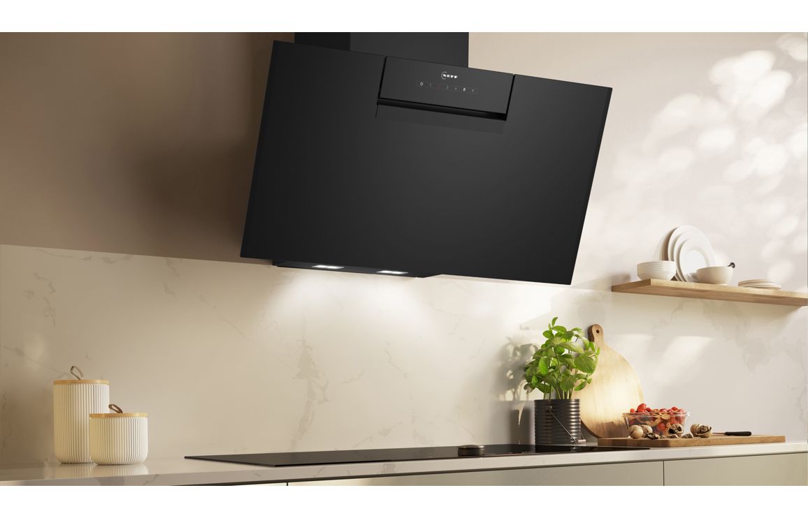Neff N50 D85IFN1S0B 80cm Angled Chimney Hood - Black Glass