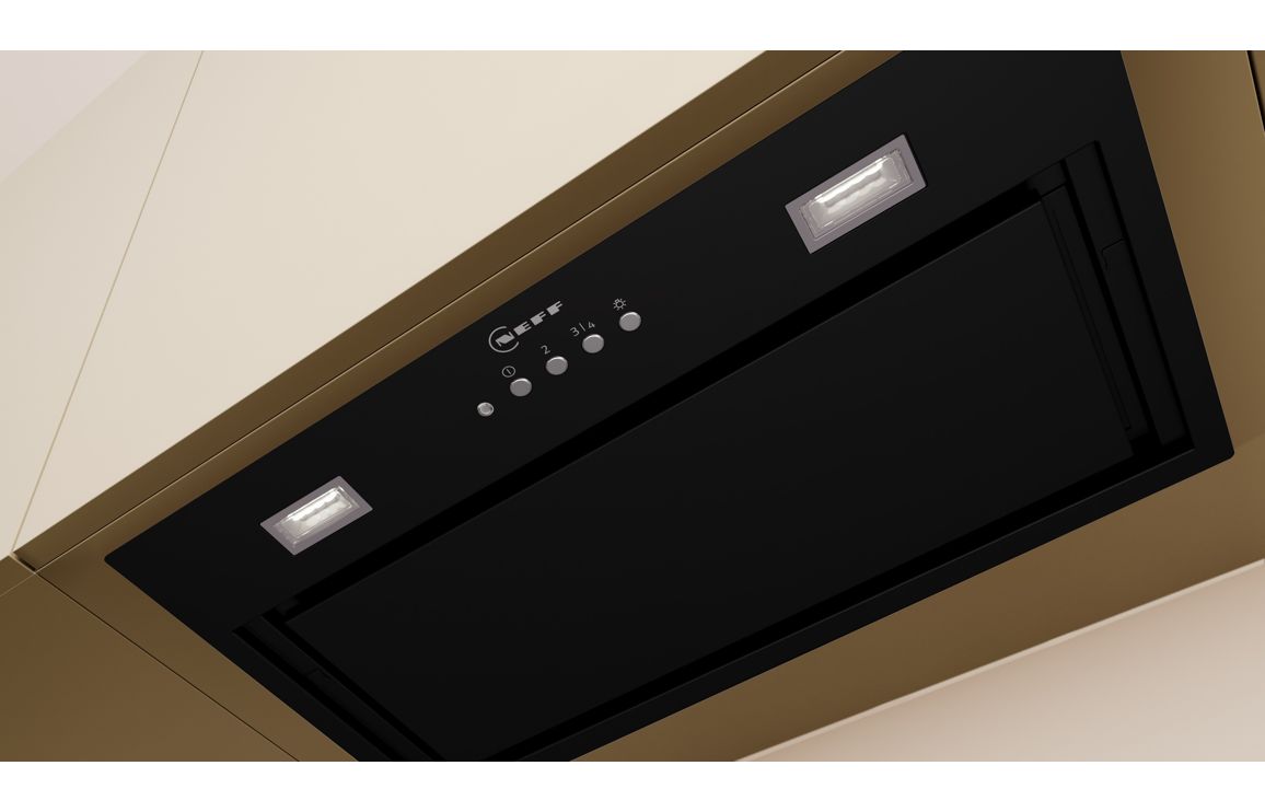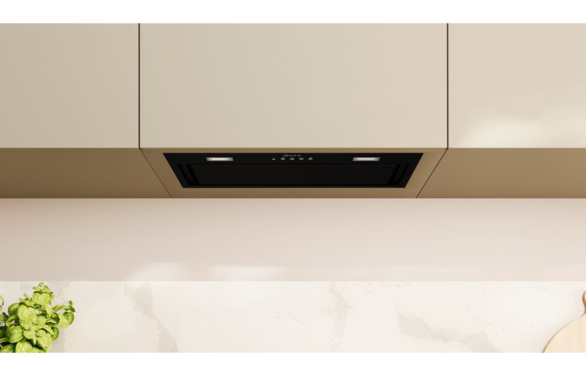 A Cabinet Fitted Neff Canopy Hood in Black.