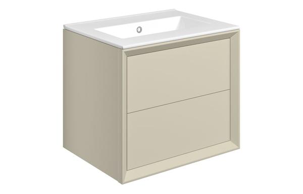 Plush 615mm Wall Hung 2 Drawer Basin Unit & 0TH Thin Edge Basin - Matt Cotton