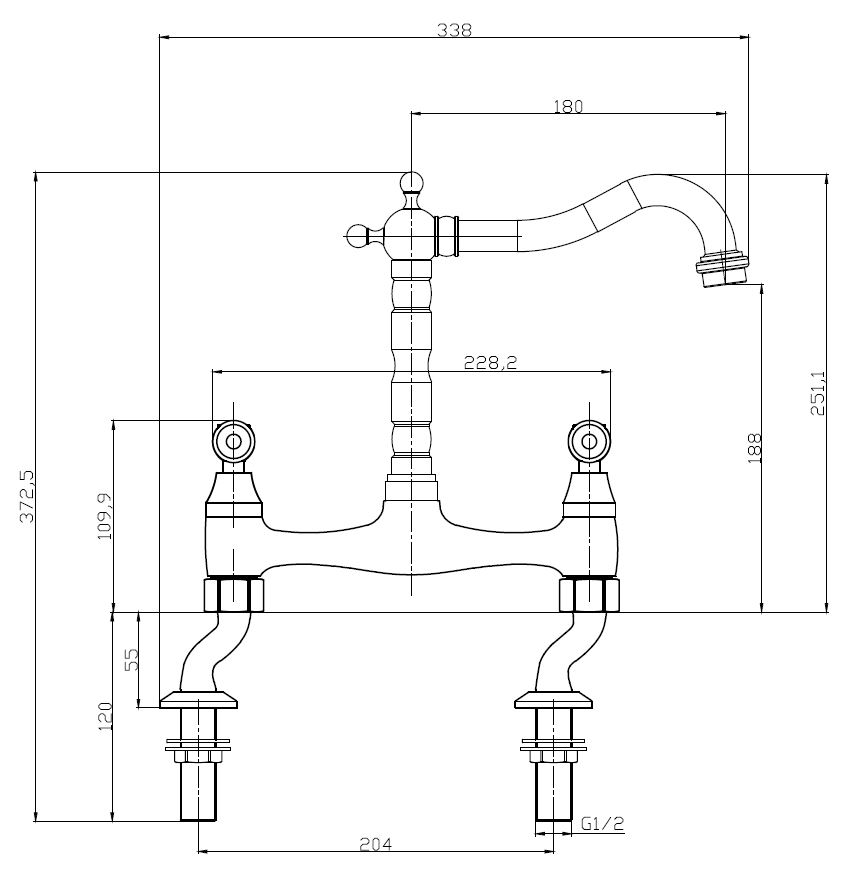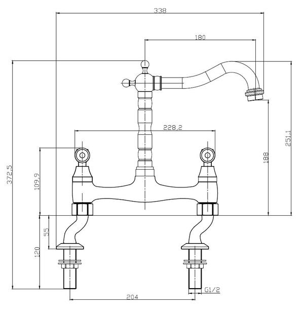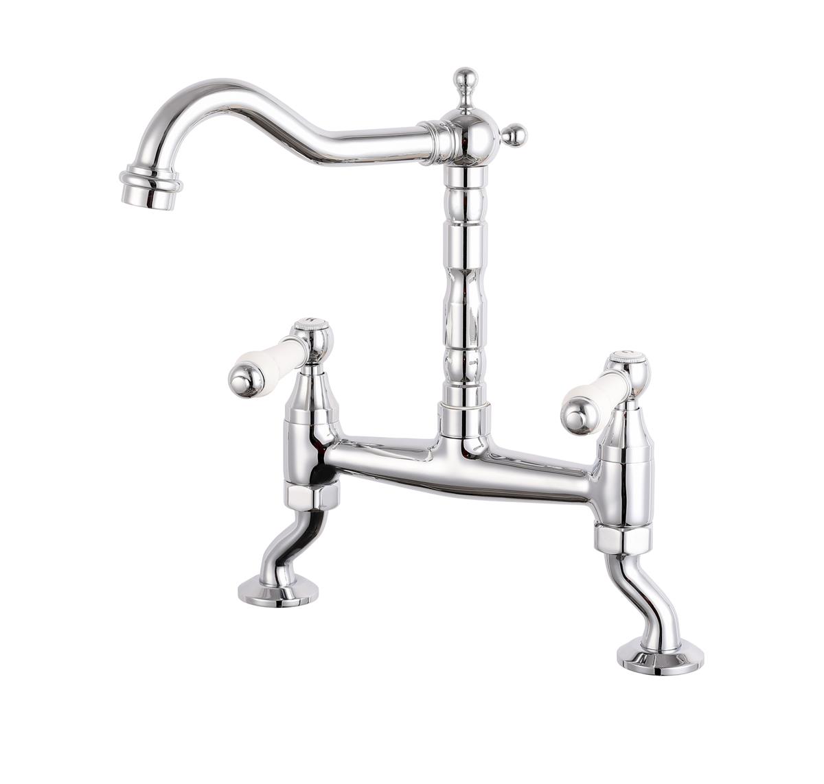 - Traditional bridge mixer design with polished chrome finish