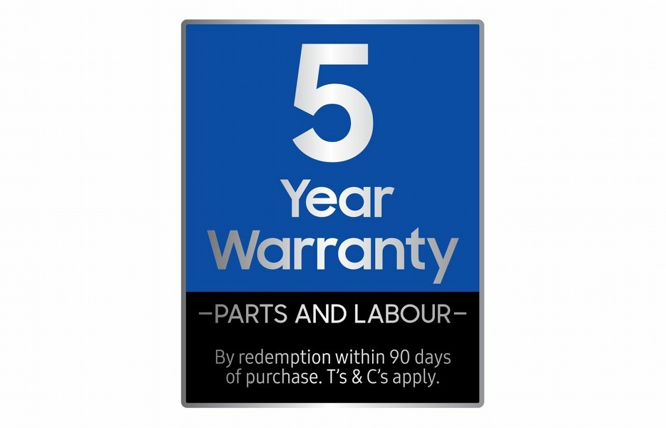 5 Year Parts & Labour (2 Standard - 3 redeemable on registration within 90 days of purchase by consumer/customer).