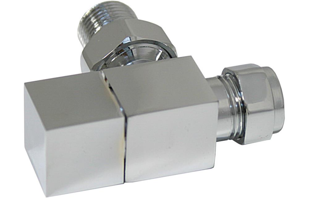 Square Chrome Radiator Valves - Angled by Aqus Bathrooms