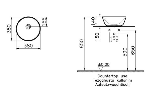 VitrA Geo 380x380mm 0TH Basin (No Overflow) - White