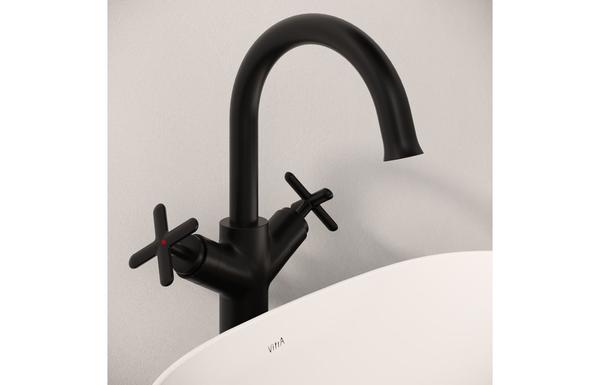 VitrA Origin Classic Tall Basin Mixer (Cross Handles) - Matt Black by Vitra
