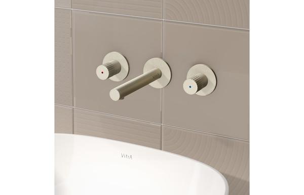 VitrA Origin Wall Mounted 3-Hole Basin Mixer - Brushed Nickel