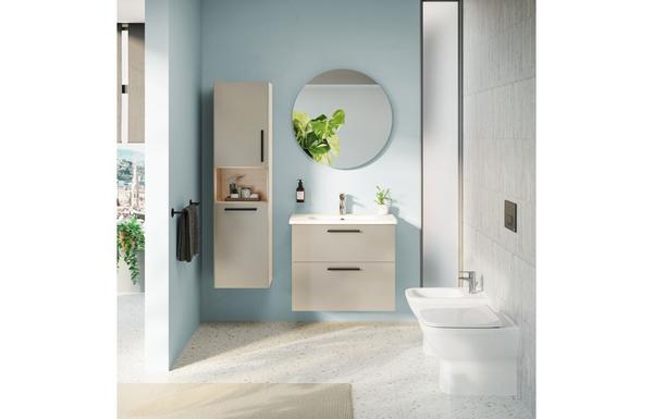 VitrA Root Flat 40cm 2 Door Semi-Tall Unit w/Laundry Basket (LH Hinge) - Bright Sahara Beige