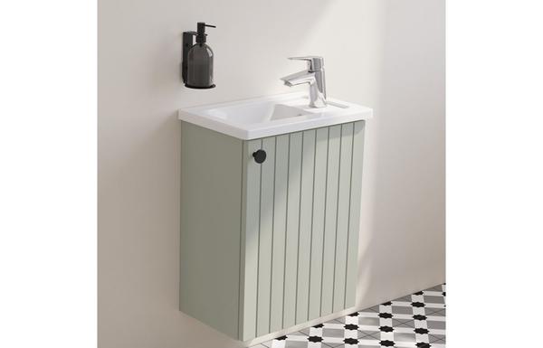 VitrA Root Groove 40cm 1 Door Wall Hung Slim Washbasin Unit (RH Hinge) - Matt Retro Green by Vitra
