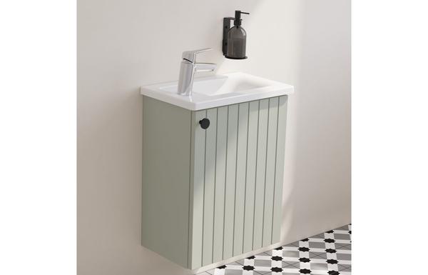 VitrA Root Groove 40cm 1 Door Wall Hung Slim Washbasin Unit (RH Hinge) - Matt Retro Green