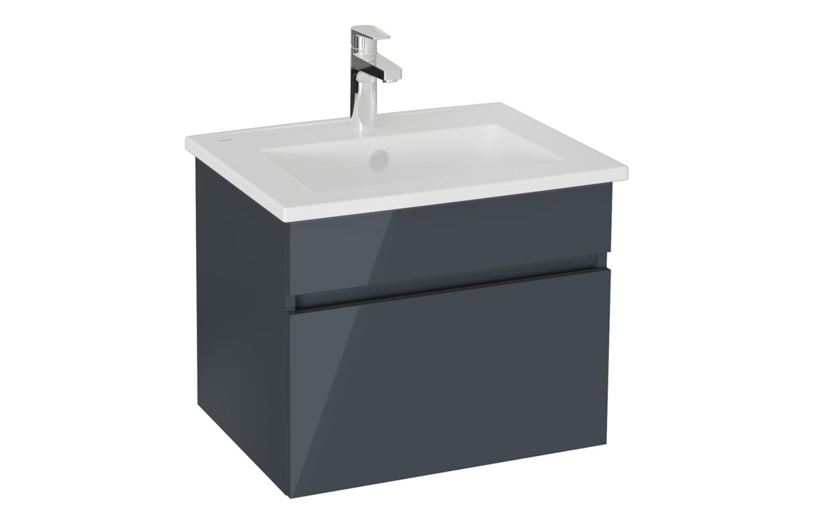 VitrA S20 Square 60cm 1 Drawer Wall Hung Basin Unit - High Gloss Anthracite