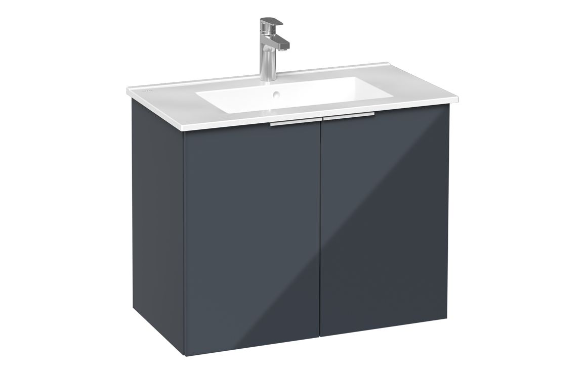 VitrA S20 Square 80cm 2 Door Wall Hung Basin Unit - High Gloss Anthracite