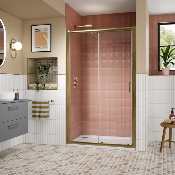 1200mm Sliding Shower Door - Brushed Brass by Ultra