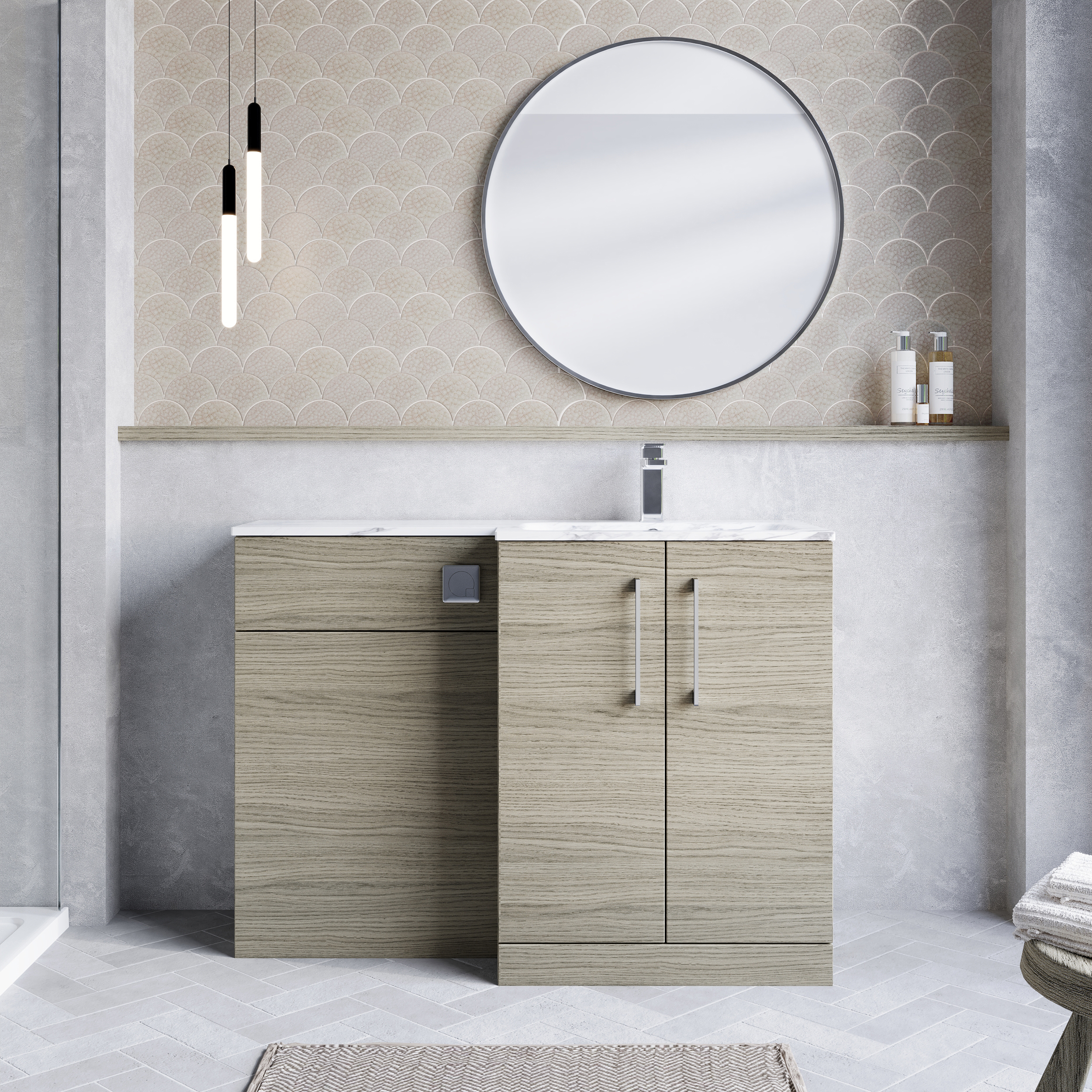 Nuie Arno 1100mm Right Hand Solace Oak Floor Standing Combination Unit Including Stone Basin by Ultra