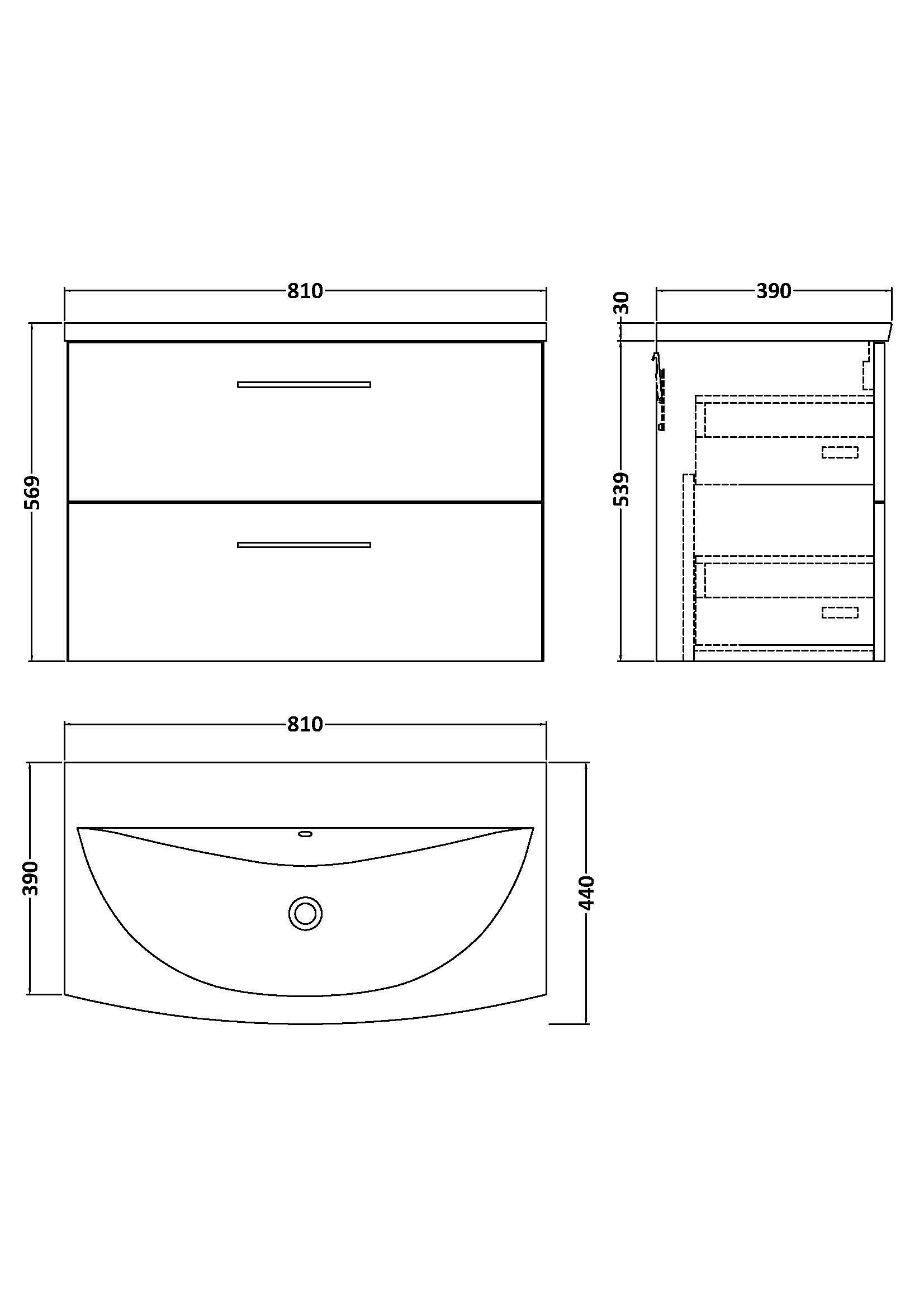 800mm Wall Hung 2-Drawer Vanity & Basin 4