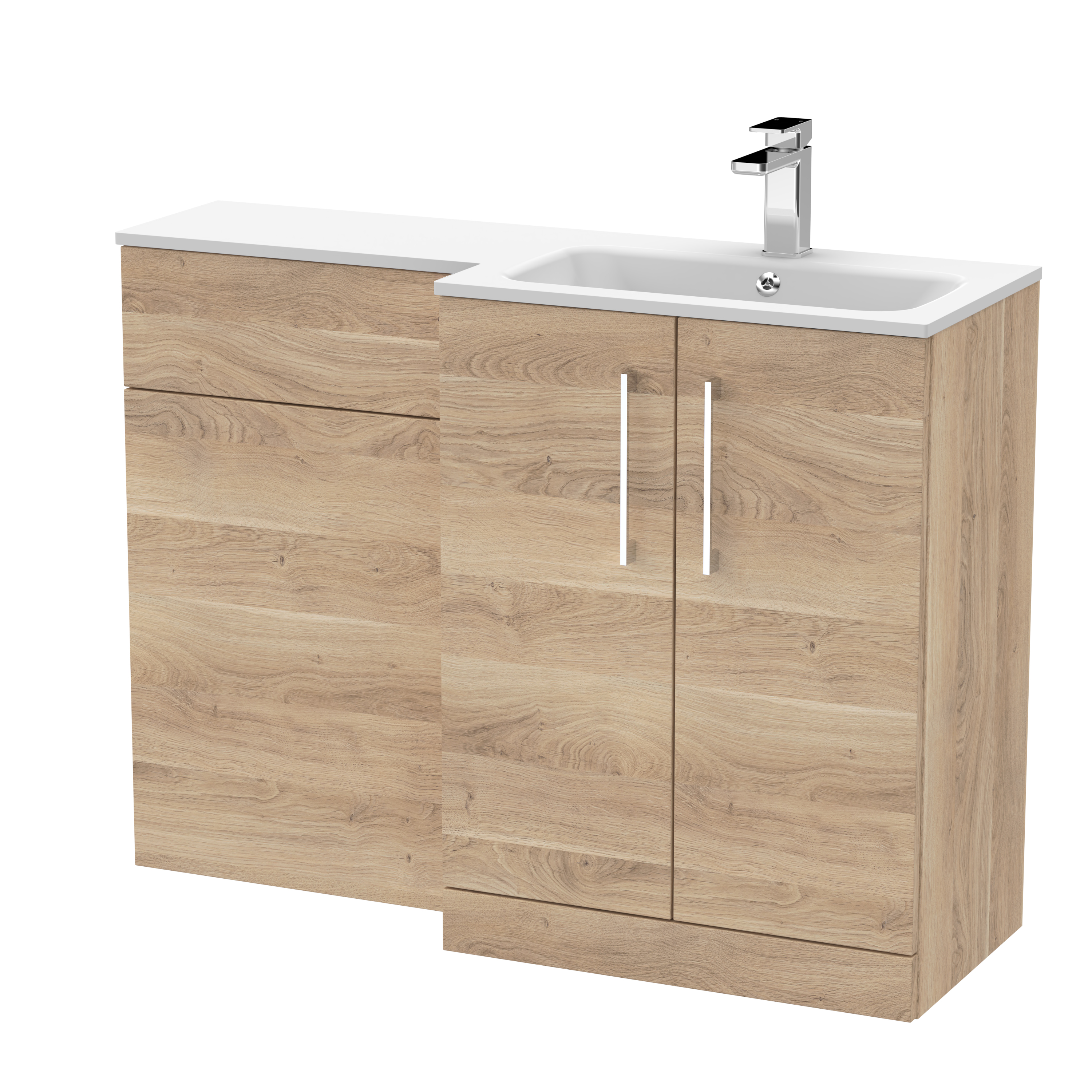 Nuie Arno 1100mm Right Hand Bleached Oak Floor Standing Vanity Unit with Basin