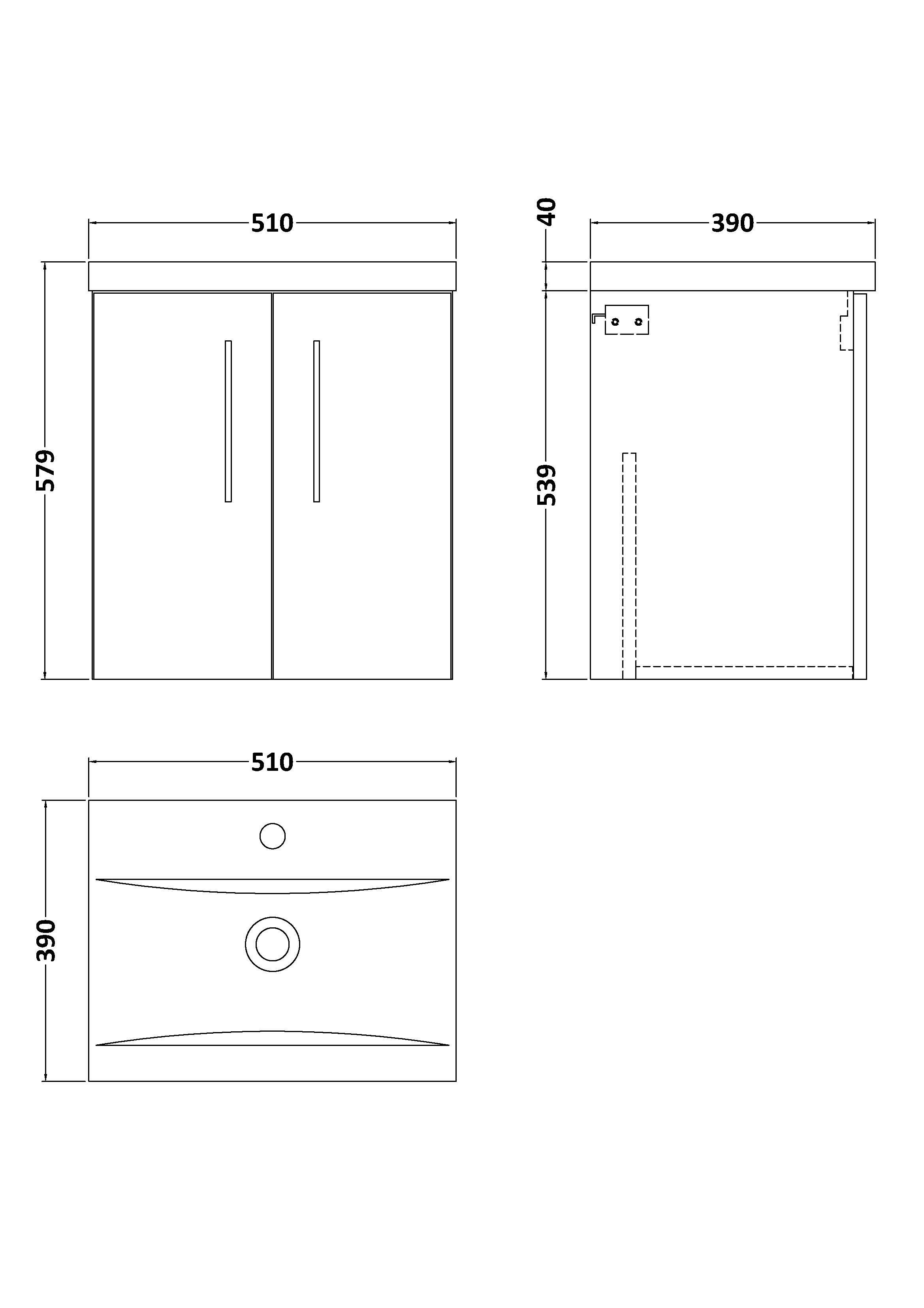 500mm Wall Hung 2-Door Vanity & Basin 1