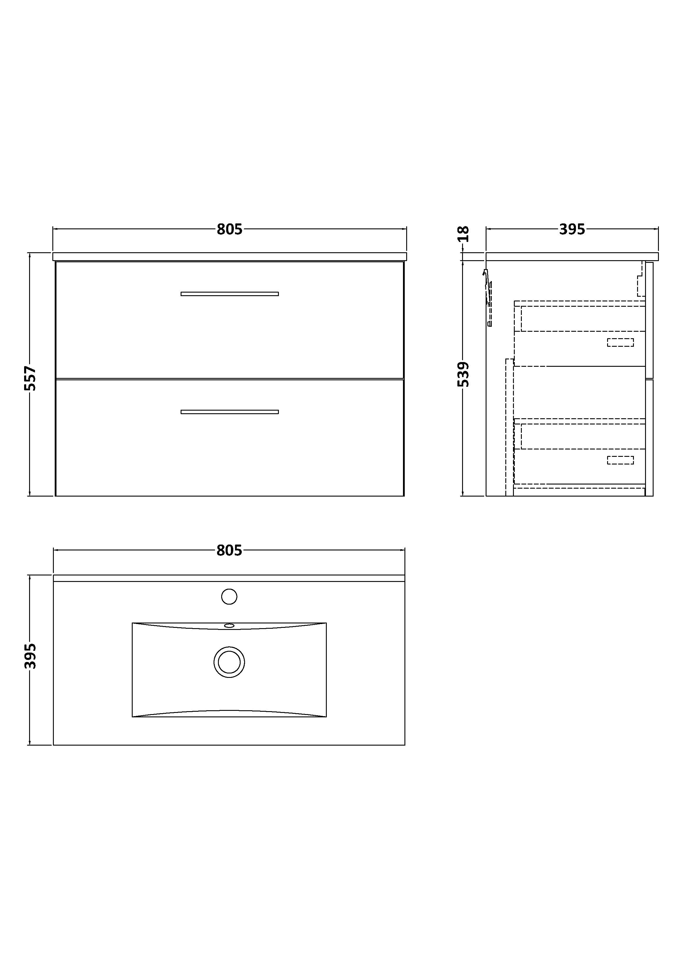 800mm Wall Hung 2-Drawer Vanity & Basin 2