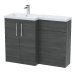 Contemporary floor standing design provides ample storage for all your bathroom toiletries and cleaning supplies.