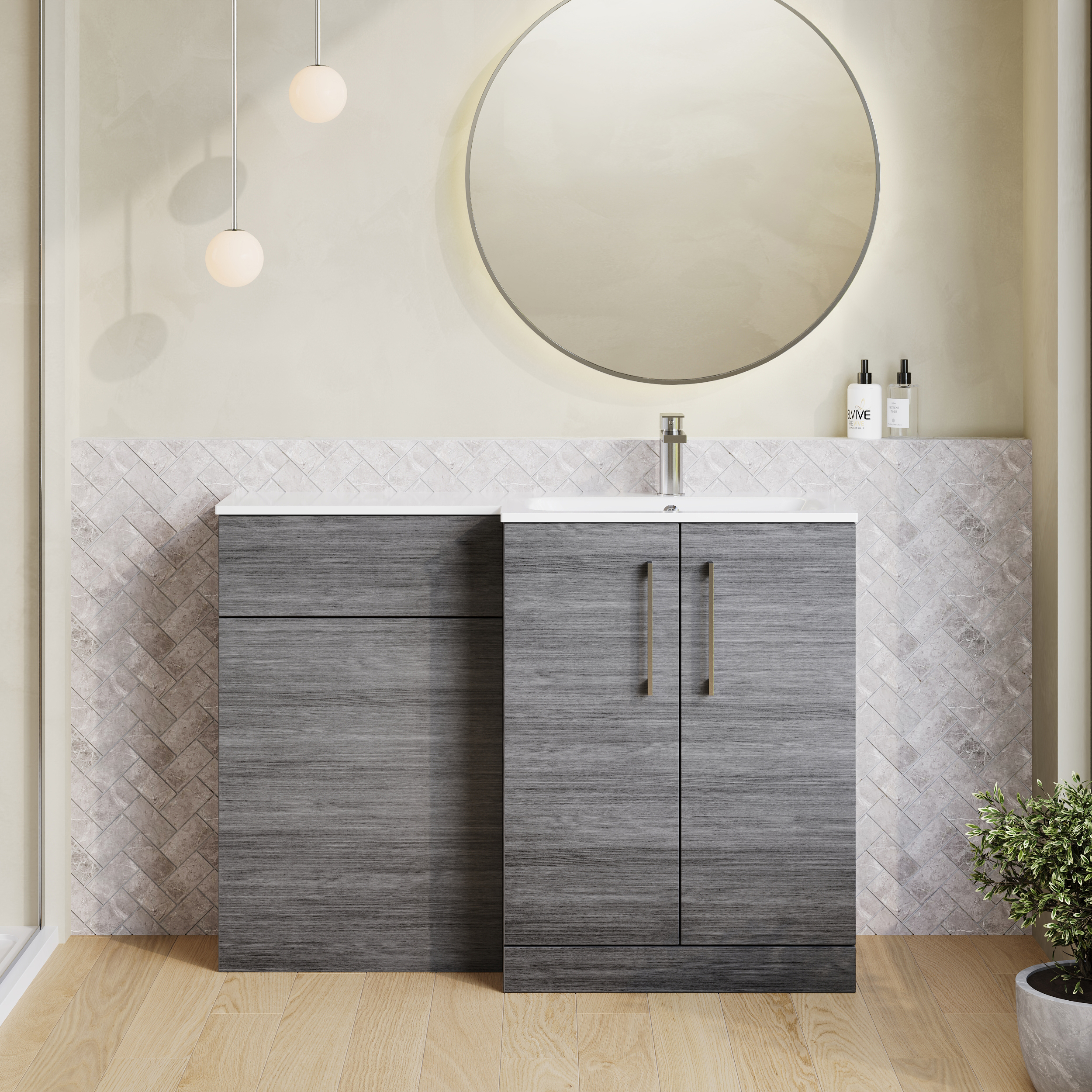 Nuie Arno 1105mm Right Hand Anthracite Woodgrain Combination Unit With Soft Close Doors