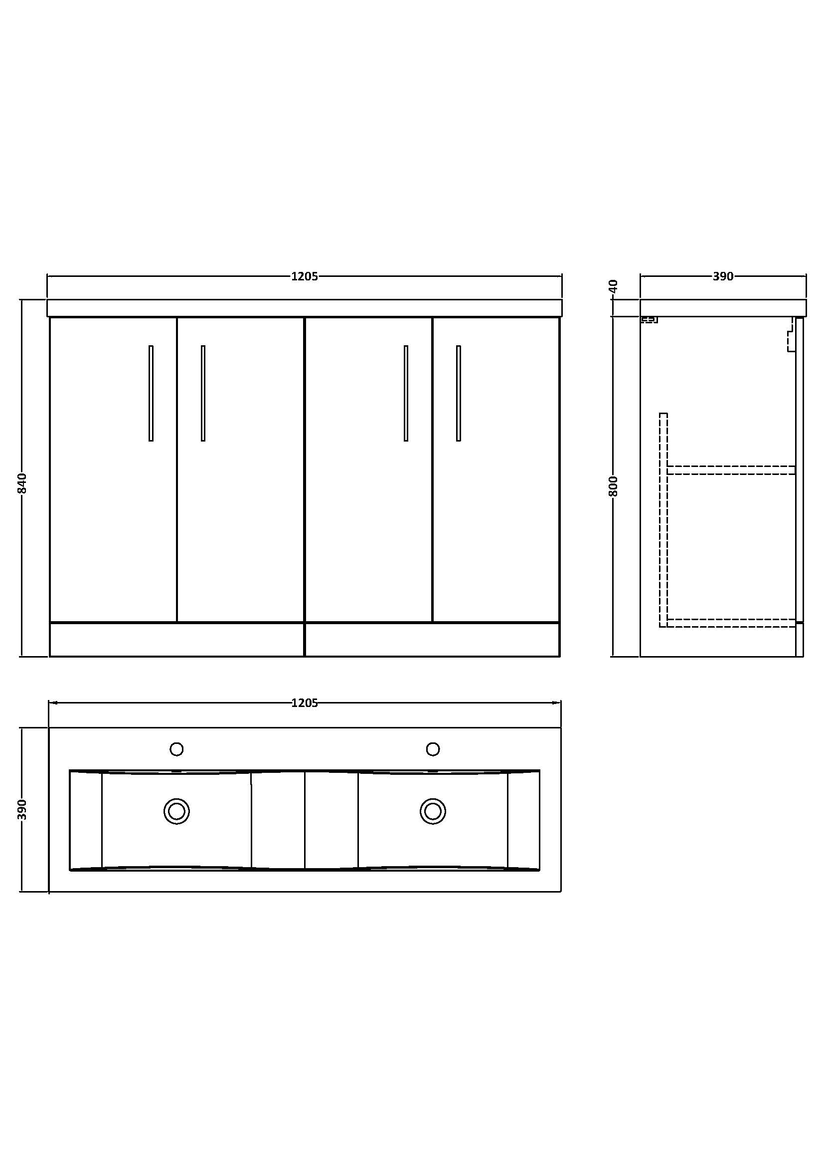 1200mm Floor Standing 4 Door Vanity & Double Basin