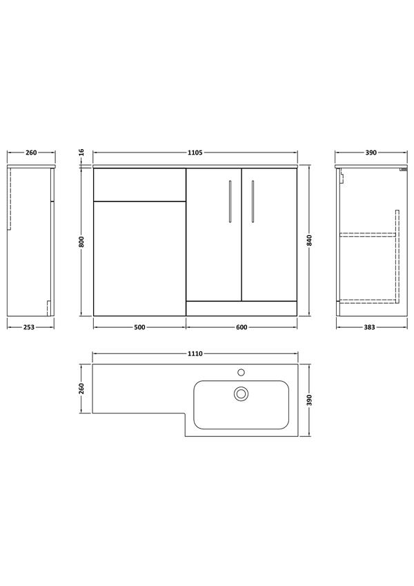 Nuie Arno 1100mm Right Hand Charcoal Black Combination Unit With Basin
