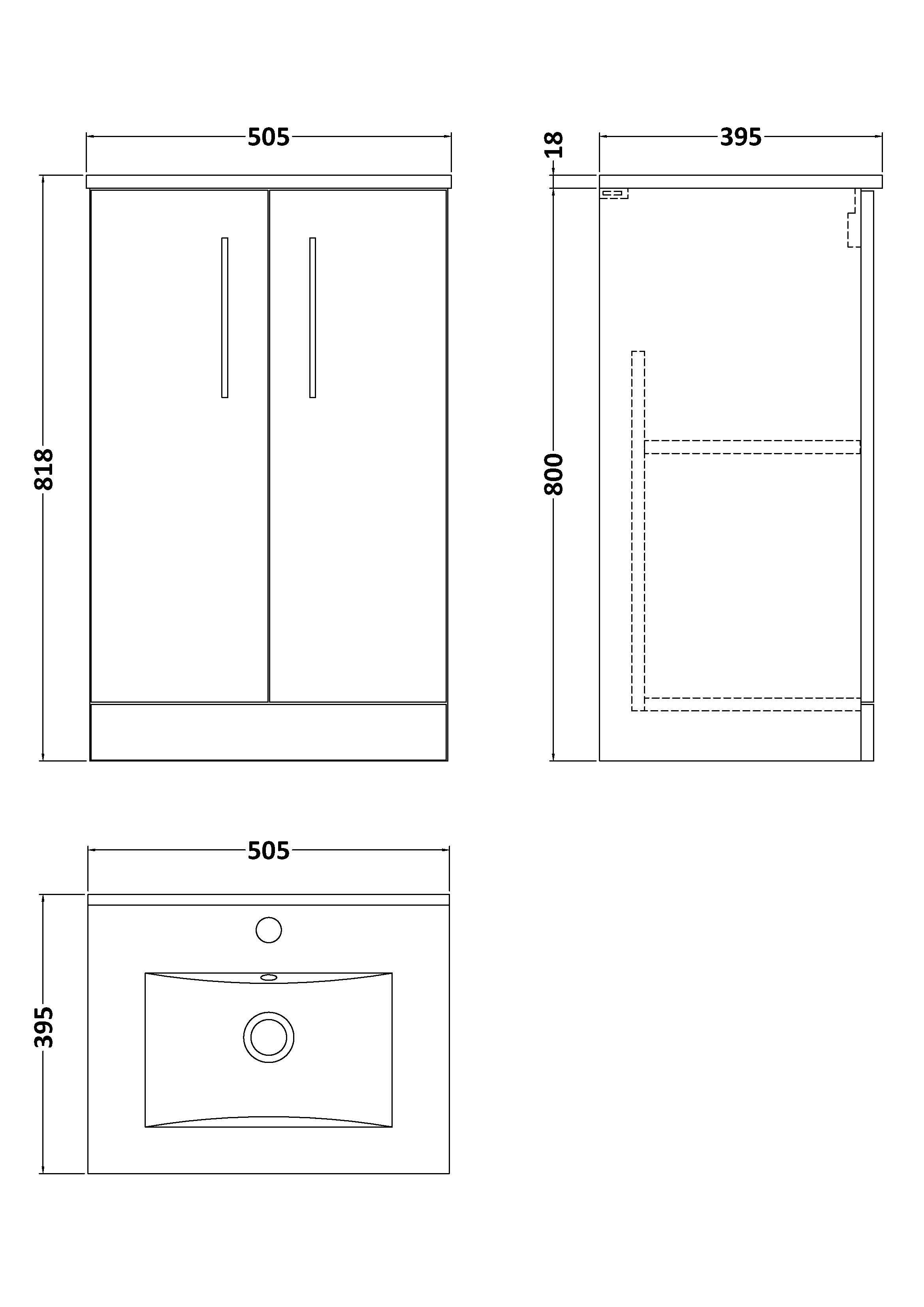 500mm Floor Standing 2 Door Vanity & Basin 2 by Ultra