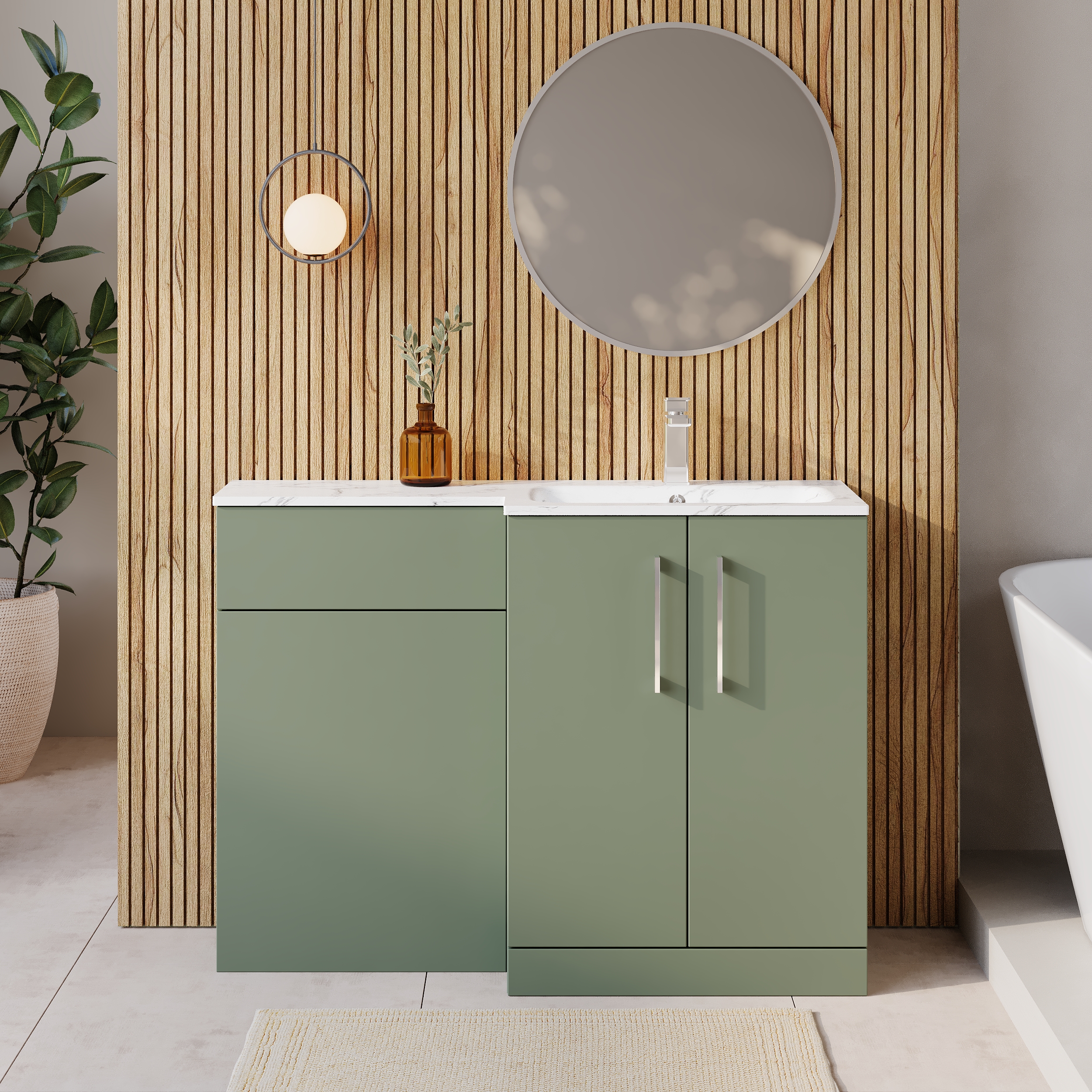 Nuie Arno 1100mm Right Hand Satin Green Combination Unit With Basin by Ultra