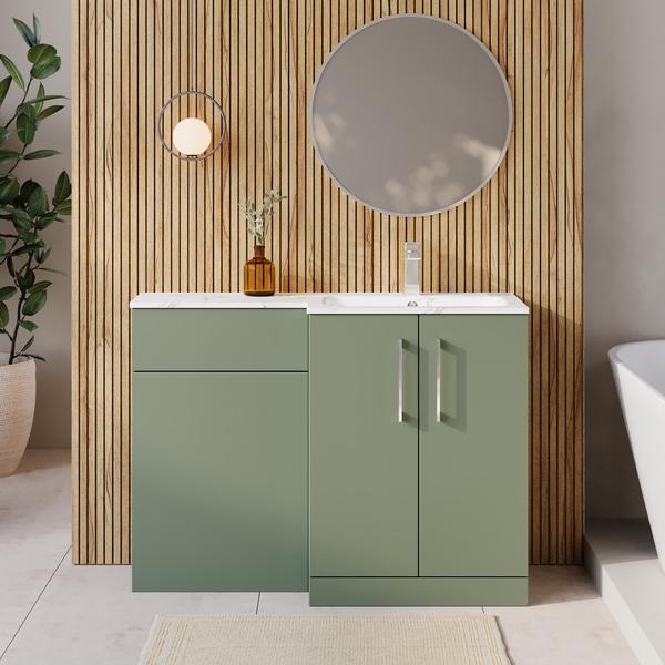 Nuie Arno 1100mm Right Hand Satin Green Combination Unit With Basin