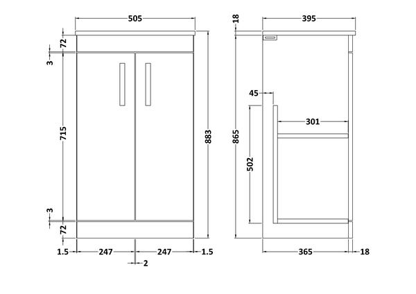 Nuie Athena 505mm Anthracite Woodgrain Floor Standing 2 Door Vanity Unit with 1 Tap Hole Basin