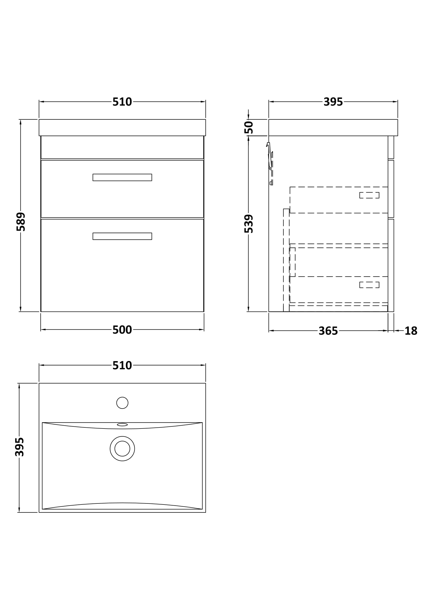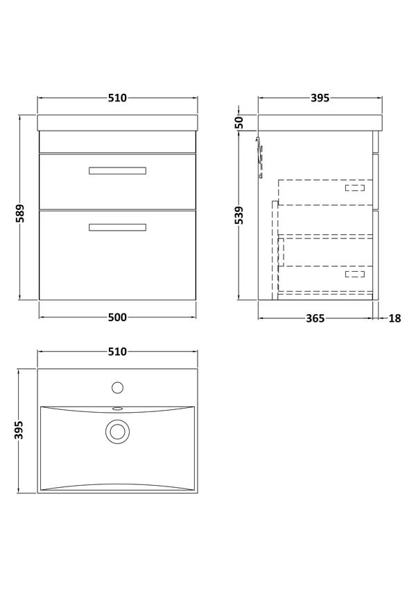 Nuie Athena 500mm Charcoal Black Wall Hung 2 Drawer Vanity Unit With Thin-Edge 1 Tap Hole Basin by Ultra